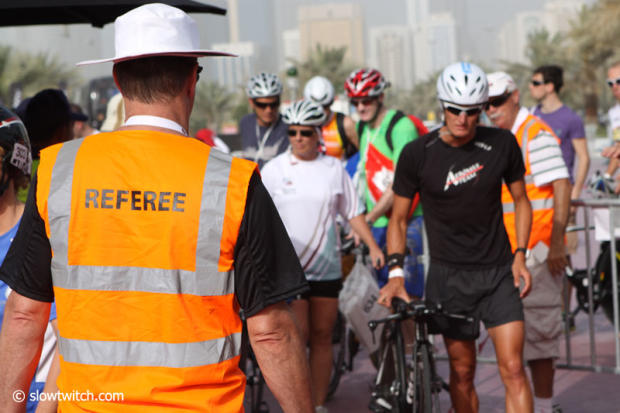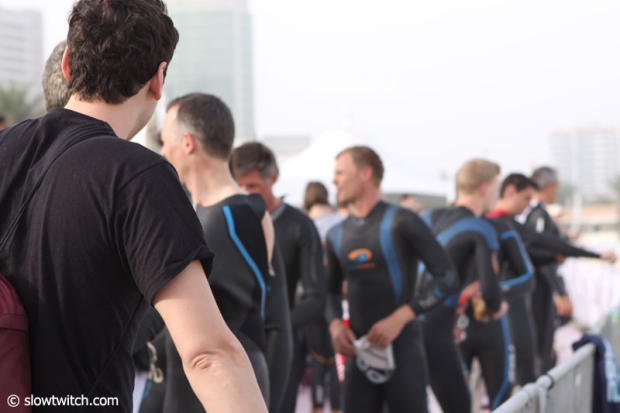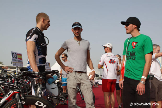 The last day before the 2012 Abu Dhabi Triathlon was busy with athletes getting one more swim in and then it was time already to check-in the race bikes into transition.