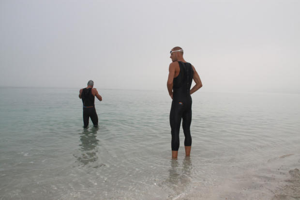 Bryan Rhodes and Dirk Bockel about to test the waters.