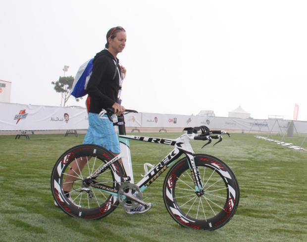 There is certainly a bit more tension in the air now with the race less than 24 hours away. We followed some of the athletes today as they got one more swim in and then started to check their bikes in.