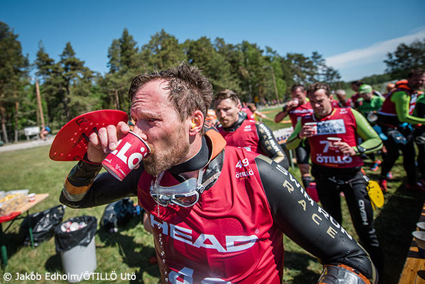 Full throttle with paddles and pull buoys and running shoes on the feet. The swim aids are allowed in Swimrun racing but are not mandatory. Wetsuits however are mandatory.