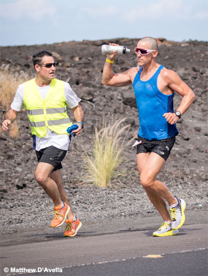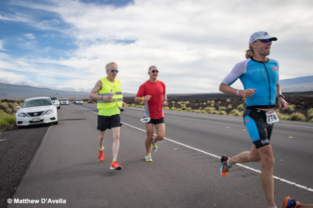 Passing Honokohau Harbor – four miles to go – Gray came upon a red light with cross traffic and had to stop. “I had a good rhythm going but that broke it,” he said. “When I started running again, my legs were seizing up. It took me a minute to warm up again and I knew I couldn’t afford another stop.”