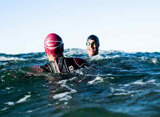 In all seriousness, you are spot on. The number one thing we did when we designed the Pinnacle wetsuit for HUUB was to keep the average triathlete in mind. We wanted to make every swimmer a better swimmer, including the adult onset swimmer. You’ll notice that we raised the hips and legs by using Airprene [a model of rubber made by Yamamoto Rubber Company] to get them out of the way so you can swim downhill. We even added in some rigidity on the outside to eliminate snaking in the water. The rigidity and core panels add to the stability of any swimmer. We’ve kept the upper thin and very flexible. On the design side of things, swimming is constantly changing to create performance gains. Think back to the 80’s when we taught S pull patterns. When most of the current wetsuits were designed, one of the core design features were center panels to, as they say, help with rotation. We have since learned that this is not the right approach to faster swimming, especially in turbulent [open] water. Fast swimming is now more focused on having our body work like a canoe or surfboard and our arms/legs moving around it.