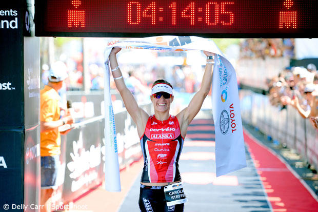 Steffen quickly made up the 2 seconds and set out alone on a race-best 1:18:40 run that brought her to the finish in 4:12:06 with a 4:15 margin on Vodickova (1:23:02 run) and 7:23 on 3rd-place finisher Crawford (1:24:02 run).