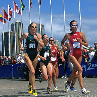 In the next Australian Olympic selection race two weeks later – the 2000 ITU World Championship at Perth – Nicole Hackett won and took the second automatic Australian slot, thanks in part to an egregious miscue by organizers who flagged the race after three of four scheduled run laps and saved her rapidly diminishing lead over fast closing Carol Montgomery.