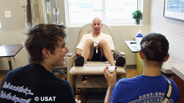 Kevin: Through the beginning treatments, I held up fairly well. But by the end they started to take a toll and I became quite weak. I received six months of chemotherapy and would go in every other week. Throughout the chemo treatments, I always deemphasized what I was going through. I knew I was battling a serious illness, but so are a lot of other people. In the early stages I still did a lot of my MMTT’s [Multisport Madness Triathlon Team] practices back home [in Illinois]. The farther I went through stages of treatment, the weaker I became. I went from training with my teammates to just going to practices and helping out with the younger kids and the coaches. That is one thing that helped me a lot and made me feel normal.