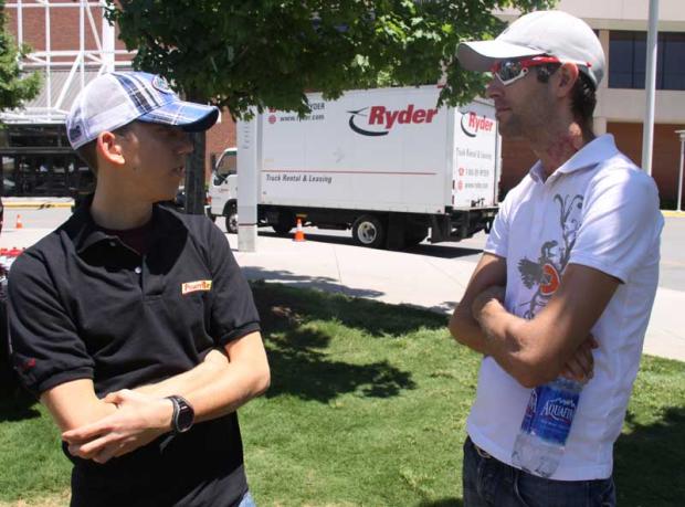 Andrew Hodges and Jordan Rapp chatting about non triathlon topics – engineering to be precise.
