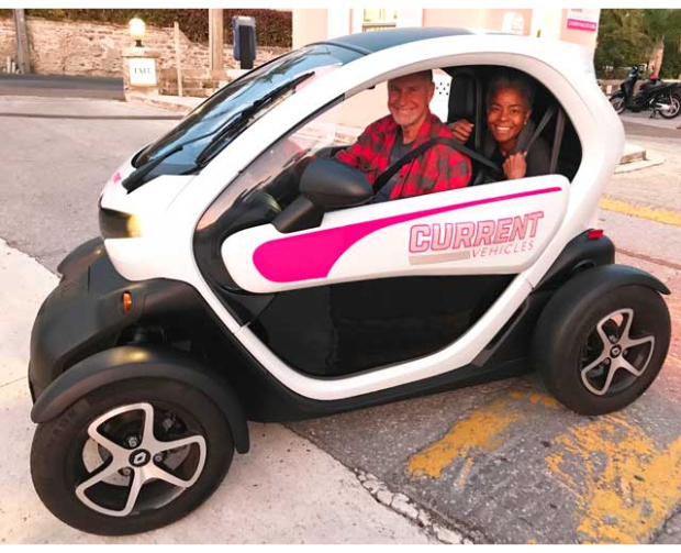 You don’t really need to rent a car in Bermuda and that’s good, because you can’t rent them anyway. You can rent this. It’s a Twizzy and you get these at hotels, such as the Hamilton Princess where my wife and I stayed. They’re electric, which is also good since gas is $8 a gallon. Or you can rent a scooter.