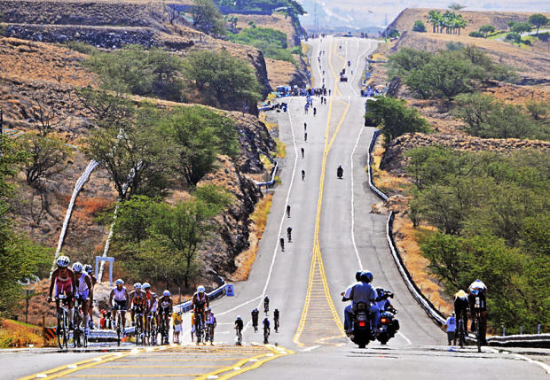 Coming and going on the rolling hills leading to Hawi — at the Ford Ironman World Championship.