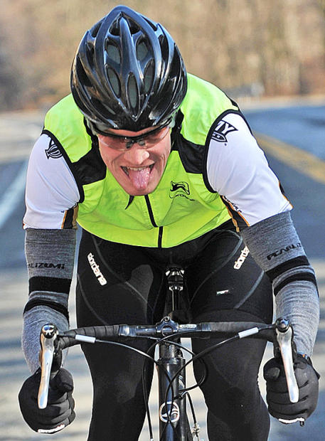 West Point Cadet Rob Sherry’s tongue was out as he went all out on a sub-freezing training ride along the Hudson River roads.