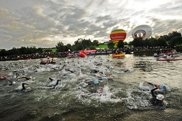 The swim cavalry charges moments after the horn at Quelle Challenge Roth.