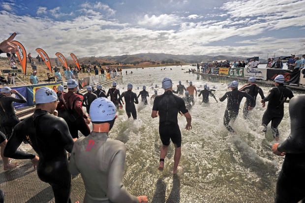 Age group wave enters the waters of Lake San Antonio last May at Wildflower.