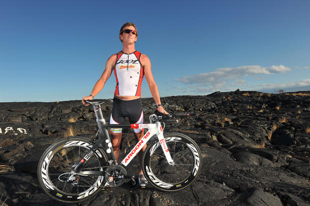 Timothy O’Donnell, 2009 ITU long distance World Champion, 2010 Ironman 70.3 World Championship bronze medalist, playing Guitar Hero during a winter indoor workout in Boulder.