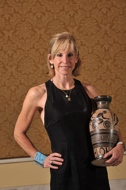Eight-time Ironman Hawaii winner Paula Newby-Fraser with her USAT 2010 Hall of Fame award.