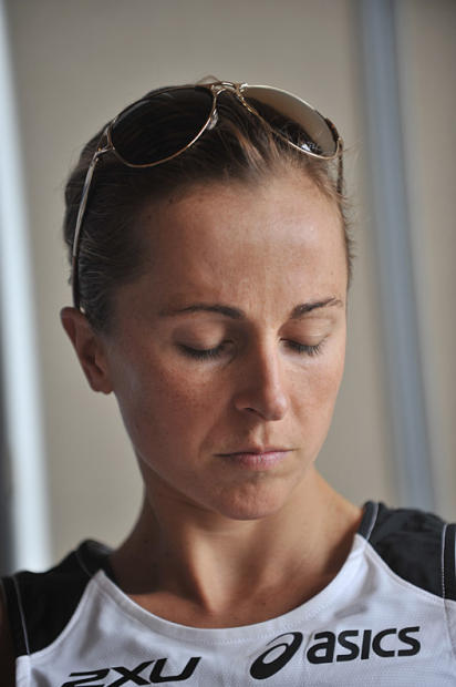 Emma Snowsill, 2008 Olympic champion, three-time ITU World Champion, two-time Hy-Vee winner, Commonwealth Games Champion, in a moment of quiet reflection.
