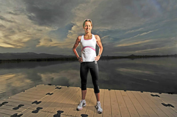 Julie Dibens, 2009 Ironman 70.3 World Champion, 2010 Abu Dhabi International champion, under a big Colorado sky at dusk on Boulder Reservoir.