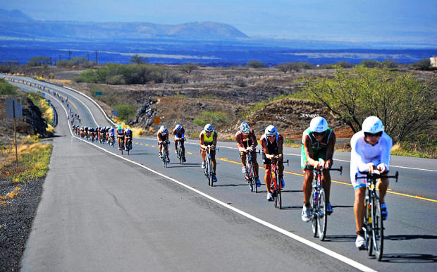 An endless string of tightly packed age groupers at Kona.