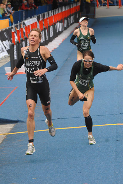 New Zealand’s Samantha Warriner fights young Erin Densham of Australia for the bronze.