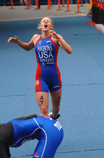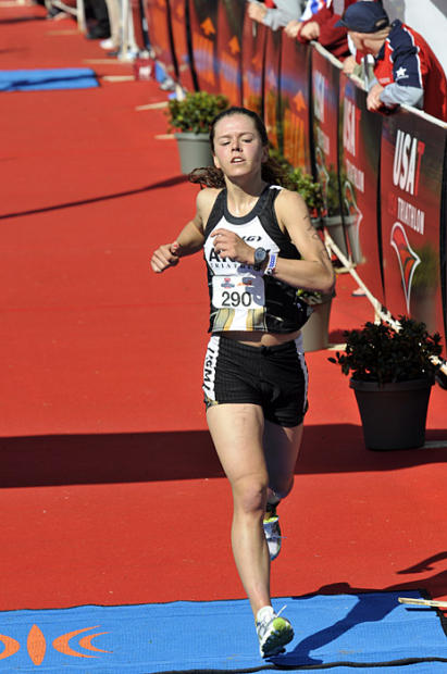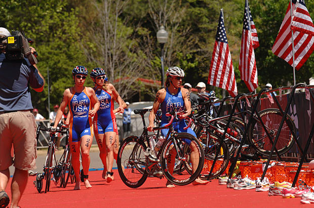 Julie Ertel practiced lightning transitions for two months at her home in Irvine, California. The homework paid off here as she broke into an unassailable lead at T2.