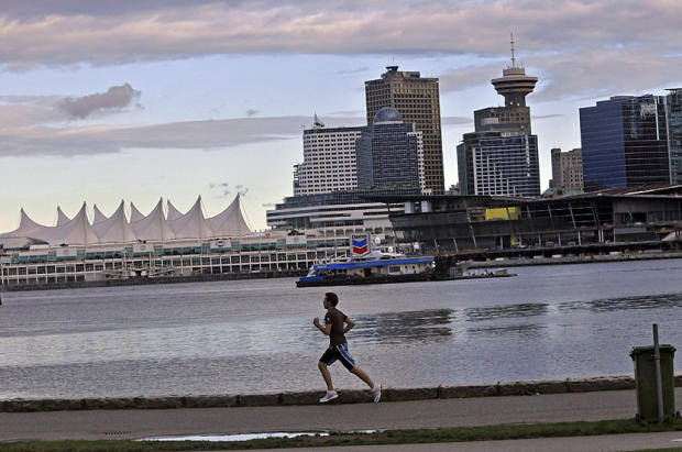One age grouper takes a final warm-up run on Vancouver’s beautiful shoreline on the eve of the 2008 ITU World Championship.