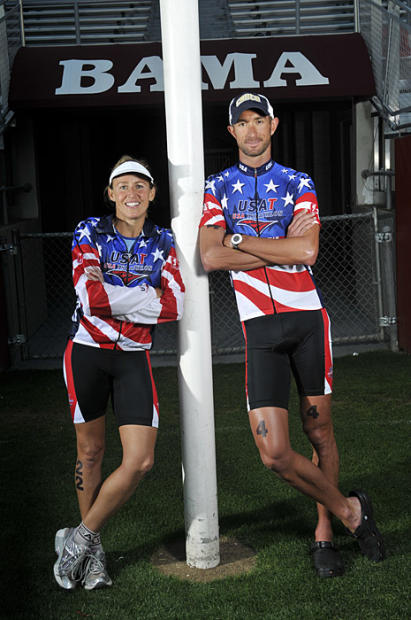 Matt Reed and Julie Ertel pose casually at ‘Bama’s end zone goalpost after scoring Olympic pay dirt earlier that afternoon.