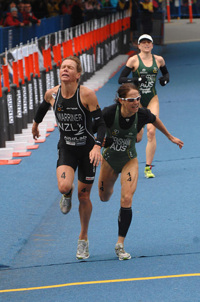 New Zealand’s Samantha Warriner fights young Erin Densham of Australia for the bronze.