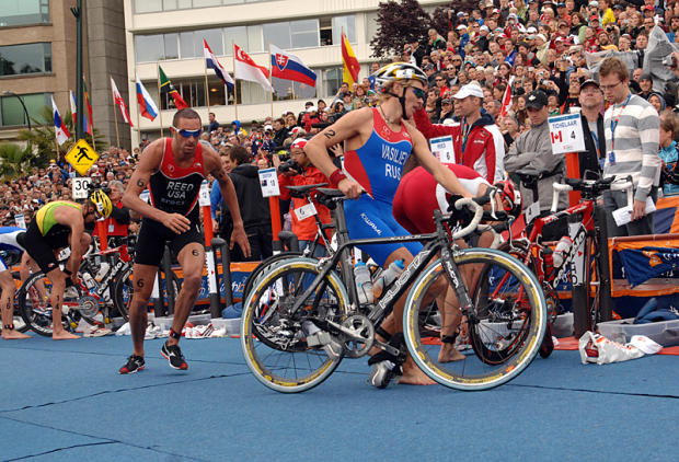 With the third Olympic slot for the USA at stake, Matt Reed passes Russia’s Ivan Vasiliev in T2 and won the crucial duel on the run.
