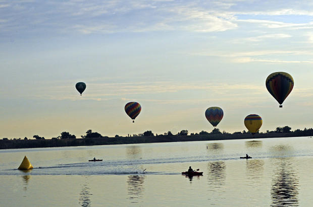 Hot air balloons festoon Boulder Reservoir 5430 swim.