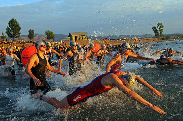 Brian Fleischmann sparkles in early morning light emerging from Boulder 5430 swim.