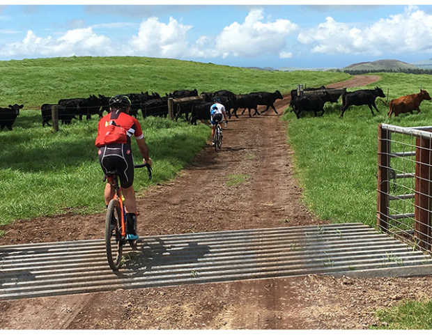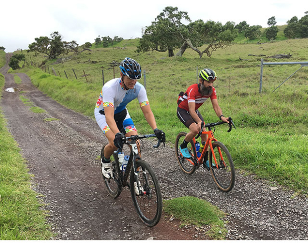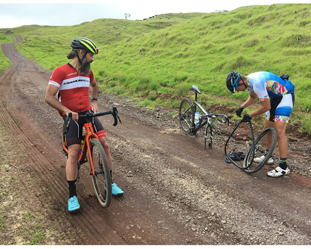 Alex Candelario was a busy guy. Three of us, Matt Hill (Diamondback), Ian Murray, and I arrived in Waimea to do this gravel ride, and I forgot Matt's thru axle. So, we called up Alex, who invited us over, and he just lent Matt a more appropriate bike (Matt brought his DB Podium road bike; Alex lent him an OPEN UP).