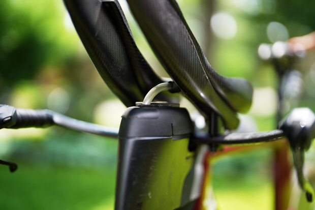 Matt uses the base section of the Metron TFA Aerobar by Vision for the base of his handlebars.
