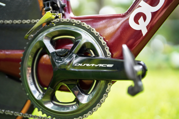 Matt runs Shimano across his bike: Dura-Ace FC-R9100-P Power Meter Crankset at 170mm length arms and 55/42 rings.