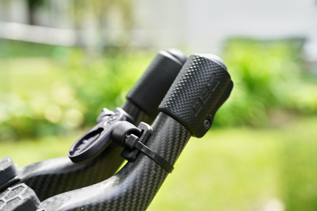 A zip-tie Garmin holder and a nice little rubber gripped area and he is ready to go