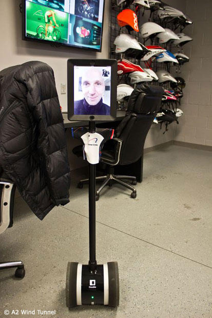 On a very cold snowy day Dirk Bockel and Axel Zeebroek of team Uplace-BMC went to the A2 wind tunnel and we joined them remotely with a Double Robotics camera as the weather was too frightful. Bockel and Zeebroek actually arrived the day prior to tweak their position and decide on certain gear from their sponsors. But on the day I had planned to drive it would have been a dangerous trip to drive the 50 some miles to Mooresville.