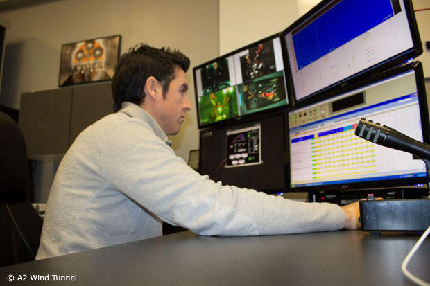 David Salazar runs the A2 wind tunnel in Mooresville, NC.