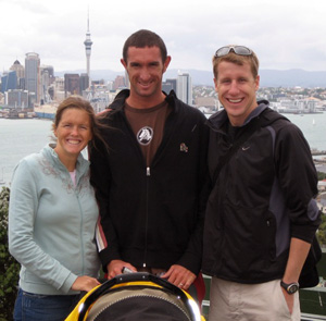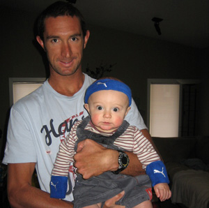 Matty: My wife Kelly is a triathlete too and has completed 11 Ironmans. I have 2 kiddies, one is 2 and a half and the other is 2 months old. She really likes to cry. Her name is Peyton and she takes after her mother. My son is named Lachlan and he is going to be a basketball player. I really have a perfect family and will enjoy winning races this year with them hopefully watching. (the tall blonde kid in the pic is not our son)