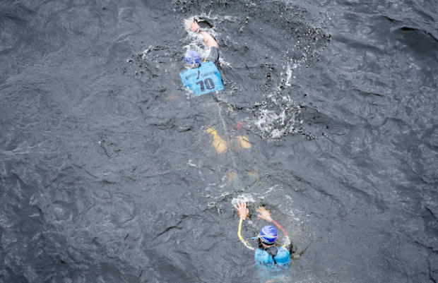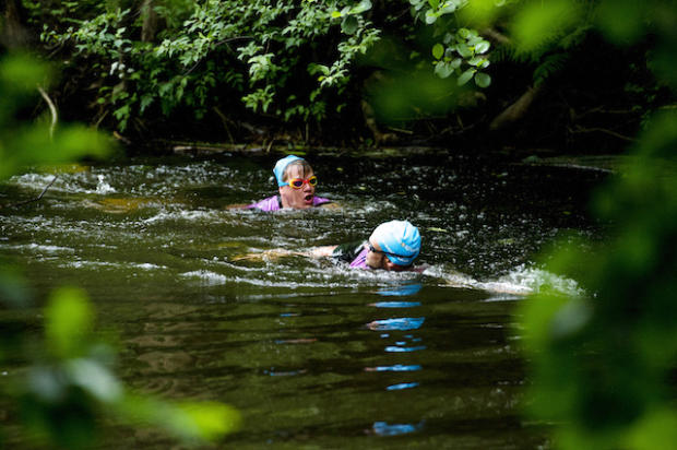 Swim legs varied and here we see athletes sighting through the section dubbed "Jungle Swim".