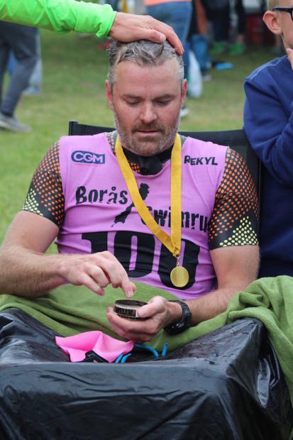 Packed Swedish tobacco, a "snus", is what this tired finisher had been looking forward to all day.