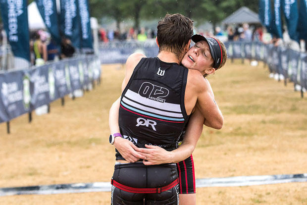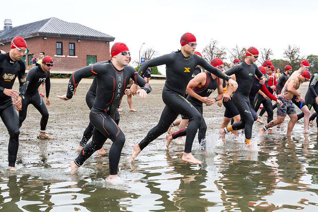 Angela Naeth emerged from the water in her Roka wetsuit, pedaled off aboard her Scott Plasma, and ran home in her Hoka running shoes (send the check to my P.O. Box, Angela).