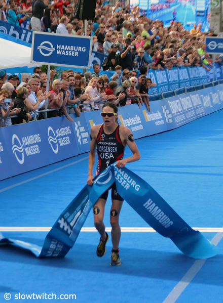 Alistair Brownlee bolted away from his brother Jonathan and Vincent Luis with 500 meters to go to capture the 2014 ITU World Triathlon Series event in Hamburg. And as the women’s champion, Gwen Jorgensen now has grabbed 4 consecutive WTS events in 2014, and that makes her the first athlete to do so.