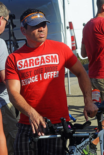 A glance at some quiet moments the day before the 32nd Wildflower Long Course Triathlon. Most of the day before the race is spent harnessing energy and engaging in light conversation.