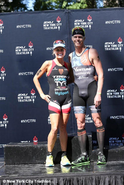 While Cam Dye and Lauren Goss won the pro male and pro female $6,000 top prizes, a men’s swim restart confused matters regarding the 11 minute 30 seconds gender handicap for an additional $3,000 Equalizer prize at the Life Time Fitness New York City Triathlon.