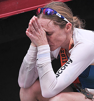 Catriona: Not until the last mile. They told me I was 11 minutes ahead. [She finished 10:03 ahead of runner-up Kelly Williamson, who ran 9 seconds faster].