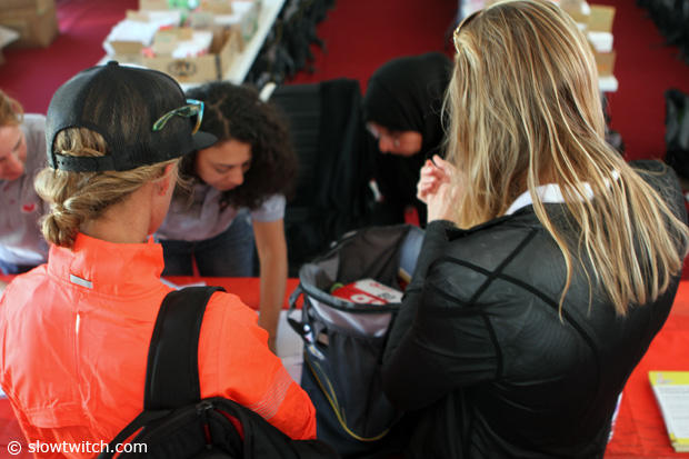 Meredith Kessler and Leanda Cave during the registration package pick up.