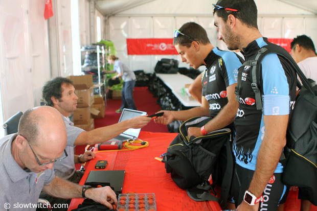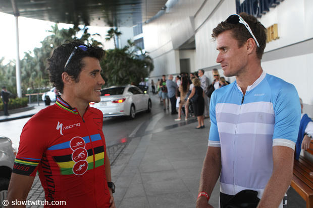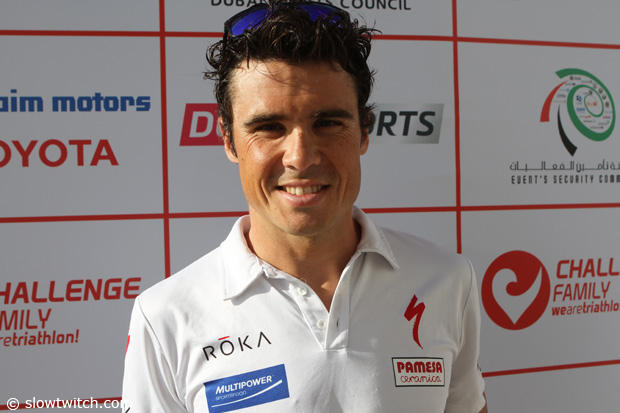 Javier Gomez has a very big target on his back here, but the Spanish pro seemed cool, calm and collected.