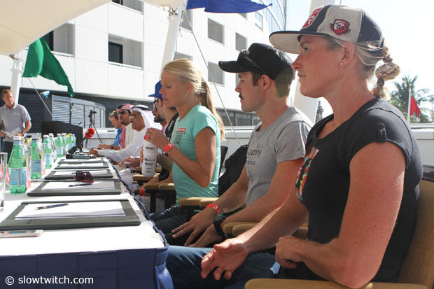 Maurice Clavel and about 100 other pros paid close attention during the pro meeting. Look for this young German to swim fast and bike hard for sure.