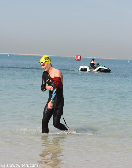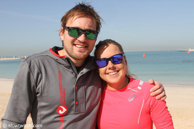 German pros Horst Reichel and Patrick Lange after the morning swim at Jumeirah Beach.