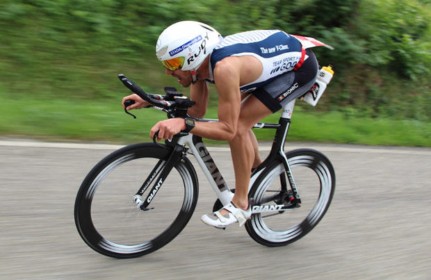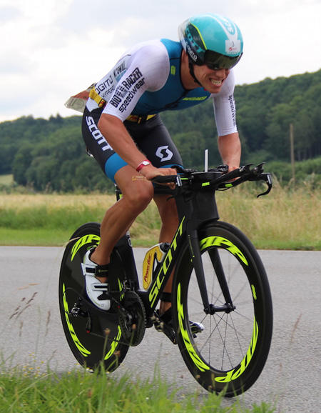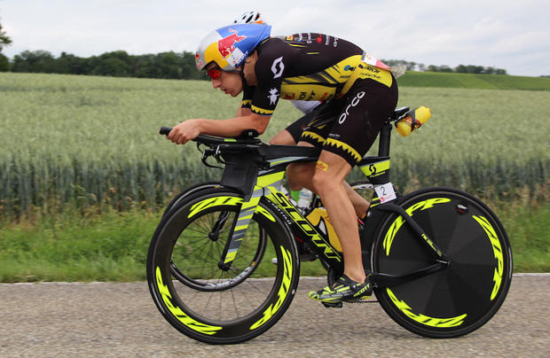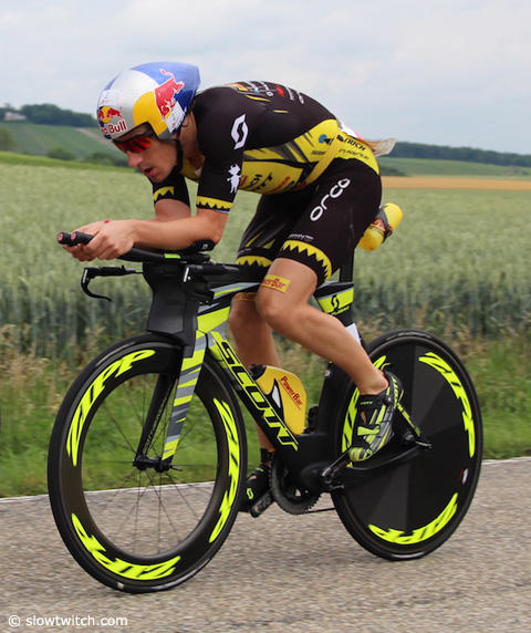 This shot of Sebastian Kienle better shows the SRAM electronic shifters.