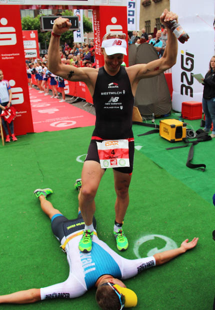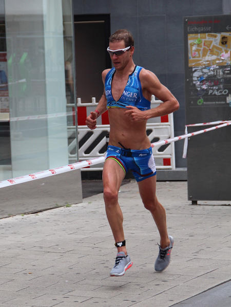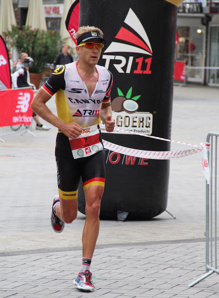 Michael Raelert was 2nd off the bike and ran well, but did not gain on Böcherer.