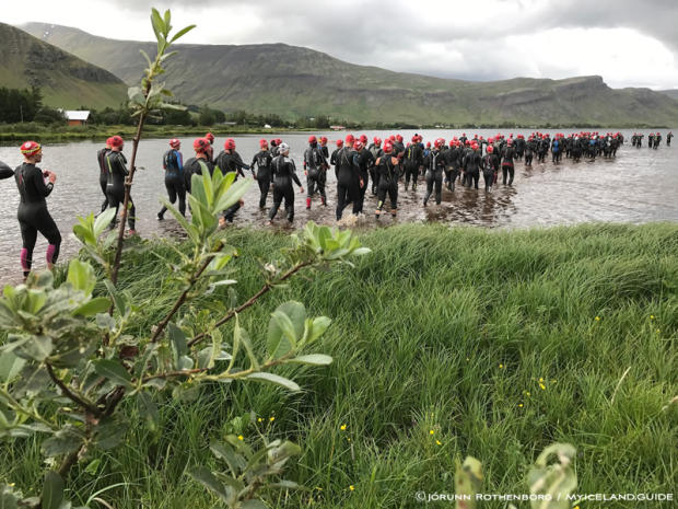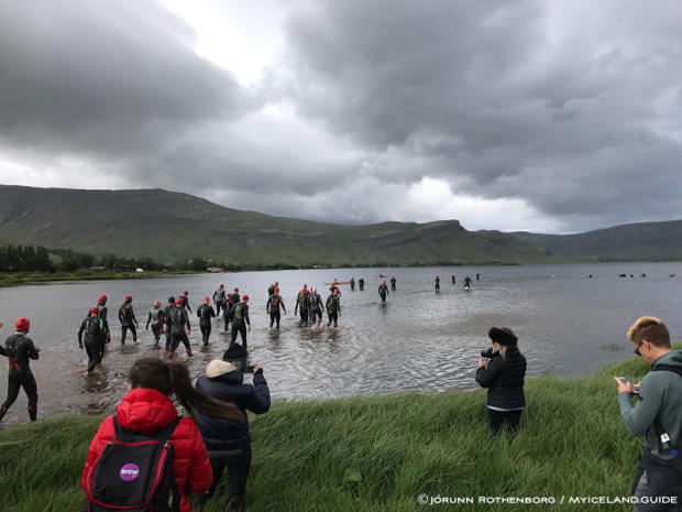 Jórunn captured these photos on a cold and blustery day in Iceland. The strong winds (40mph+ / 60kph+) caused the Race Directors to shorten the swim to a downwind 1500m swim. The race course otherwise remained unchanged.