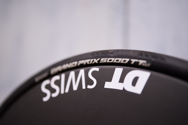 Rear wheel is the ARC Dicut Disc, front wheel the ARC 1100, 80mm width and the tire choice is the Grand Prix 5000 TT TR.